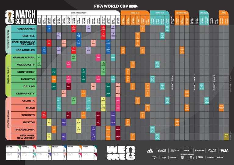 Check out the match schedule for the tournament in Canada, Mexico and the USA with each of the 104 fixtures from the 48-team event.